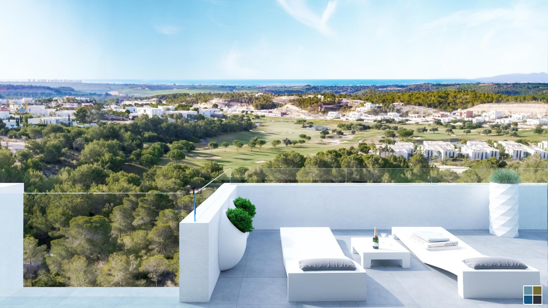 Deze Premium eigenschappen in Las Colinas Golf beschikken over de allernieuwste technologie in huis, hoge kwaliteit keukenapparatuur, kanaal-airco, vloerverwarming in alle badkamers, LED-verlichting, gemotoriseerde buitenluiken (slaapkamers), prachtige aangelegde gemeenschappelijke tuinen, gemeenschappelijke ruimtes en een designer zwembad. Alle appartementen & villa's in het Resort zijn verdeeld in verschillende privé-gemeenschappen die omheind zijn en elk hun eigen unieke omgeving hebben.