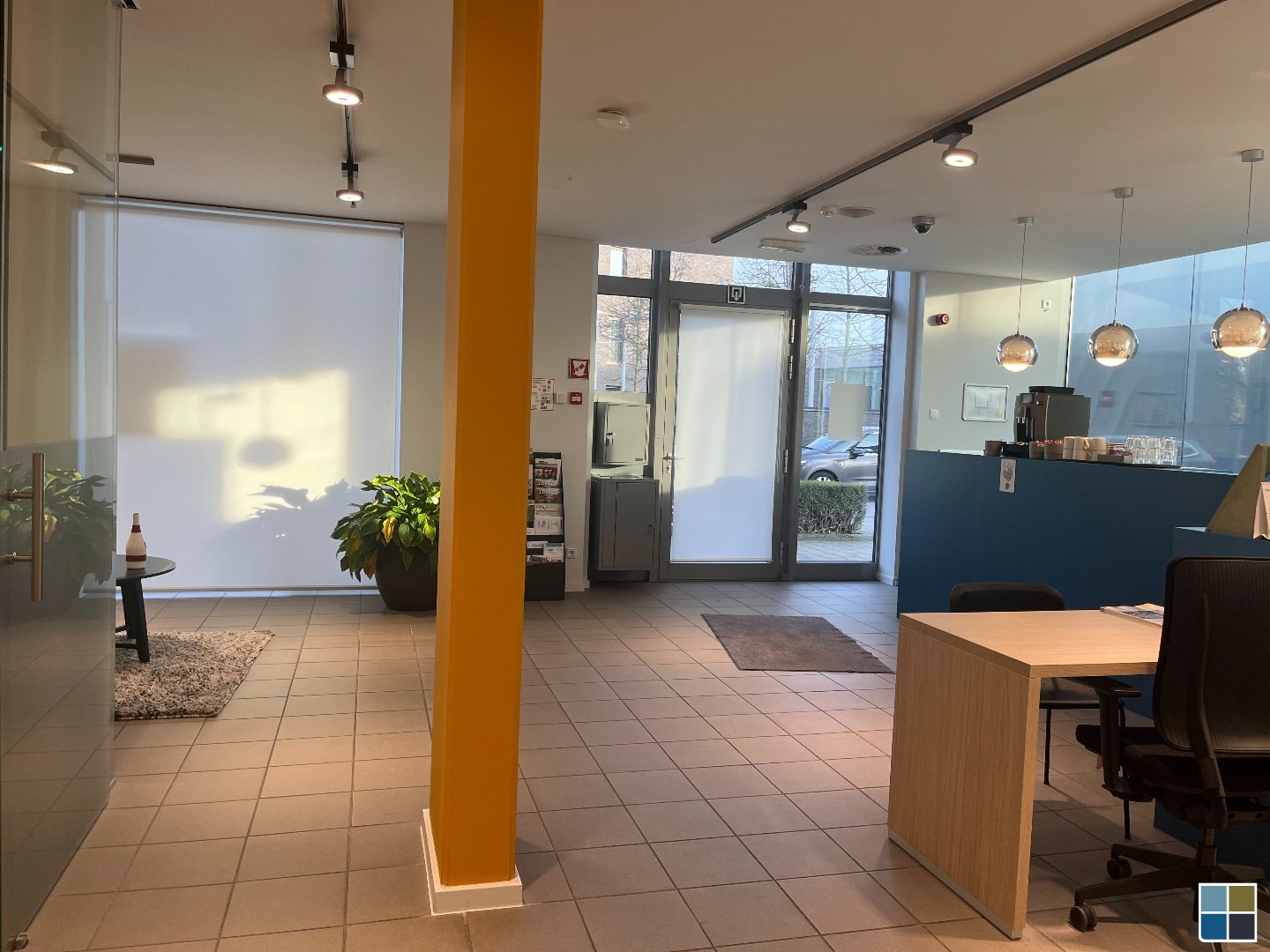 Mooi gelijkvloers handelspand van +- 220 m² toegankelijk via een aparte toegangsdeur. Met ruime ontvangstruimte, verschillende kantoorruimtes, vergaderlokaal, twee toiletten, een keukentje en extra ruimtes, eventueel voor opslag. Vanuit de gemeenschappelijke inkomhal is er ook een mogelijke toegang naar het handelspand. In de kelder bevindt zich een staanplaats nr 24 of nr. 25. Links van het pand bevinden zich de twee bovengrondse staanplaatsen nr. 1 en 2 die bij het handelspand horen. Er is geen kelder/berging aanwezig op kelderniveau.