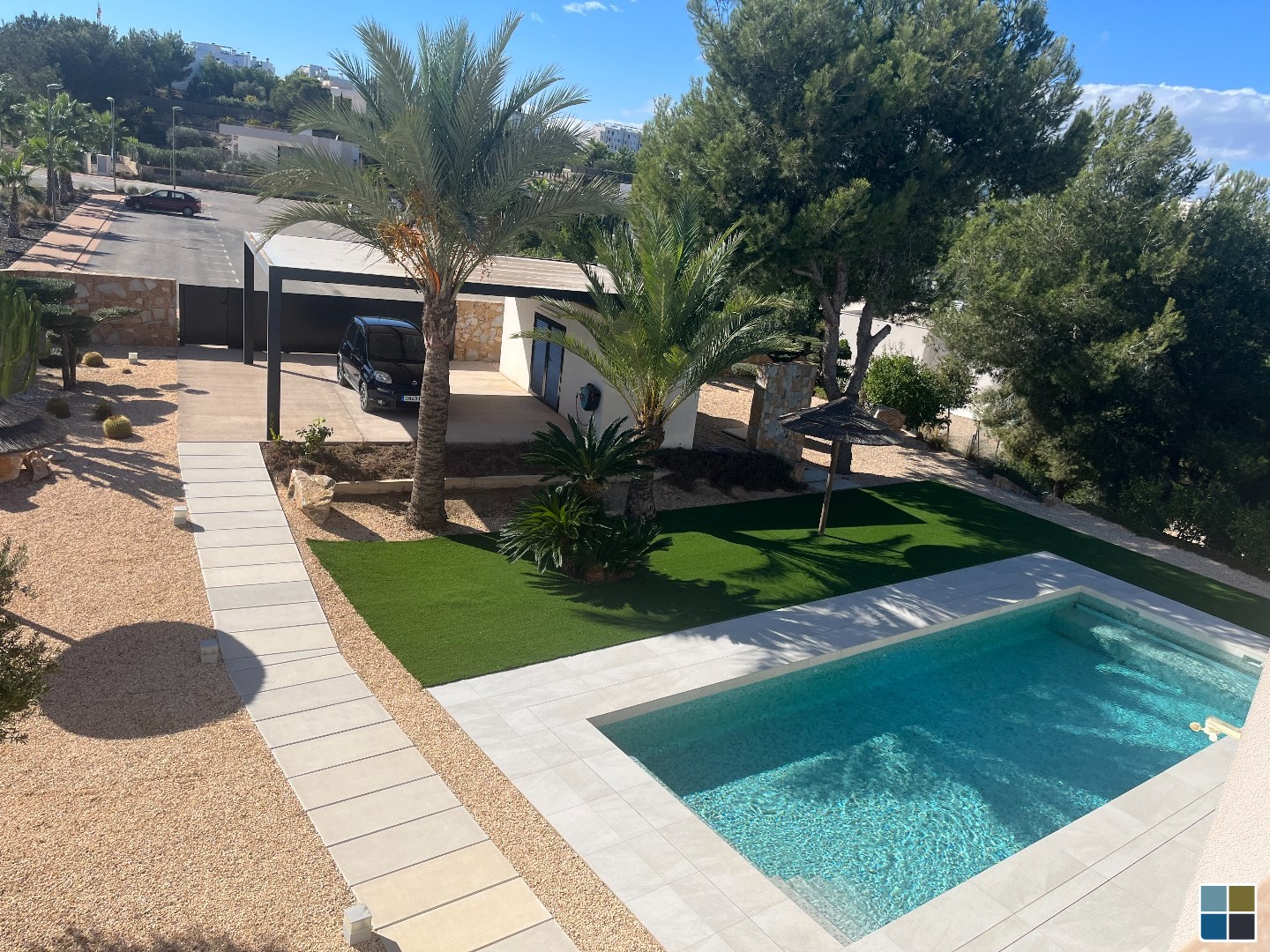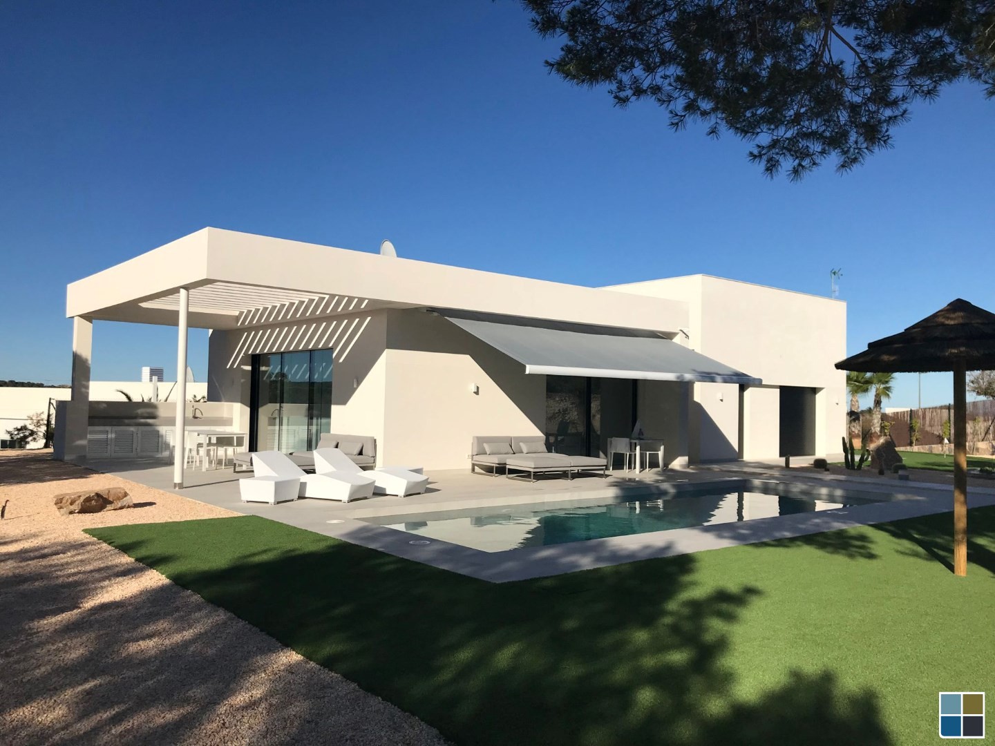 De villa beschikt over drie ruime slaapkamers, perfect voor het ontvangen van gasten of het creëren van een thuiskantoor. De twee badkamers zijn modern en stijlvol ingericht en bieden alle comfort die je nodig hebt. Als je van privacy, geen inkijk houdt is dit een heel goede spot.
